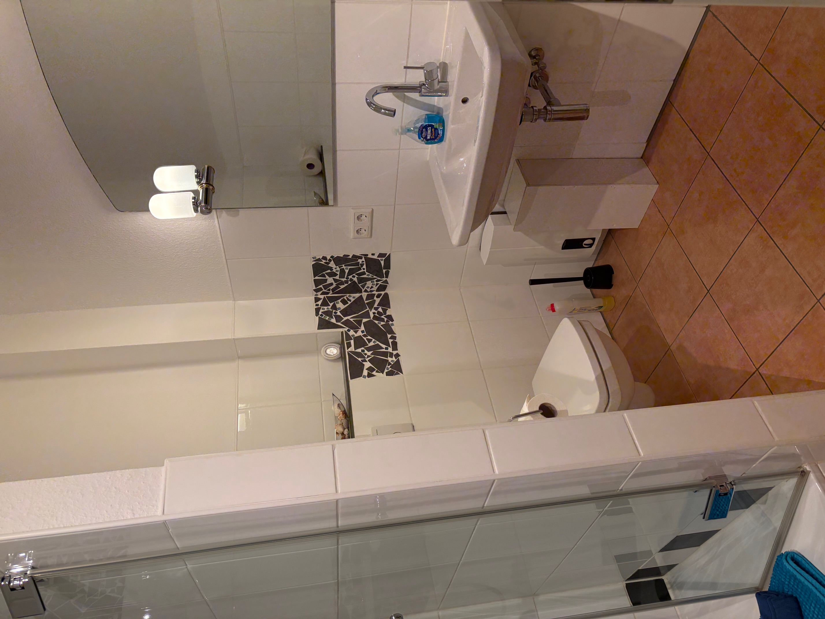 - ein Badezimmer mit Dusche und WC