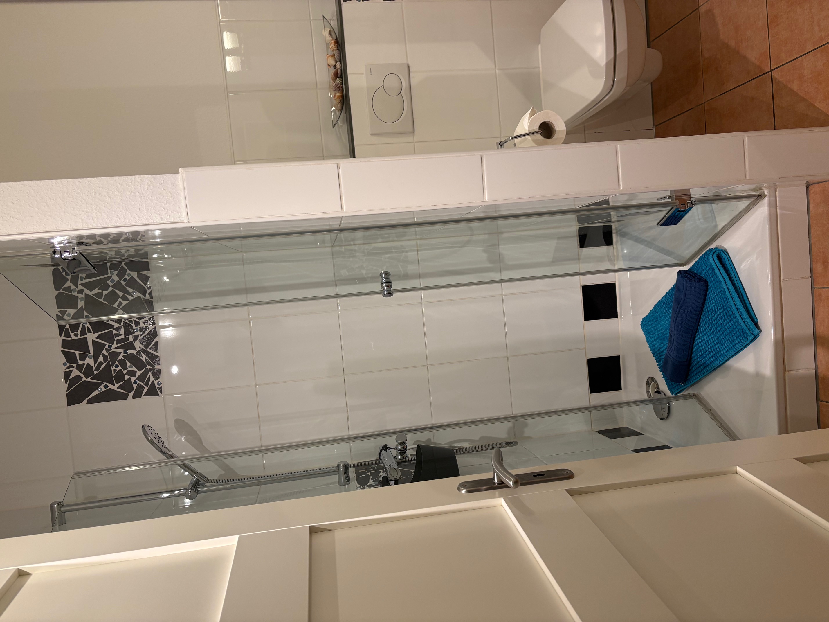 - ein Badezimmer mit Dusche und WC