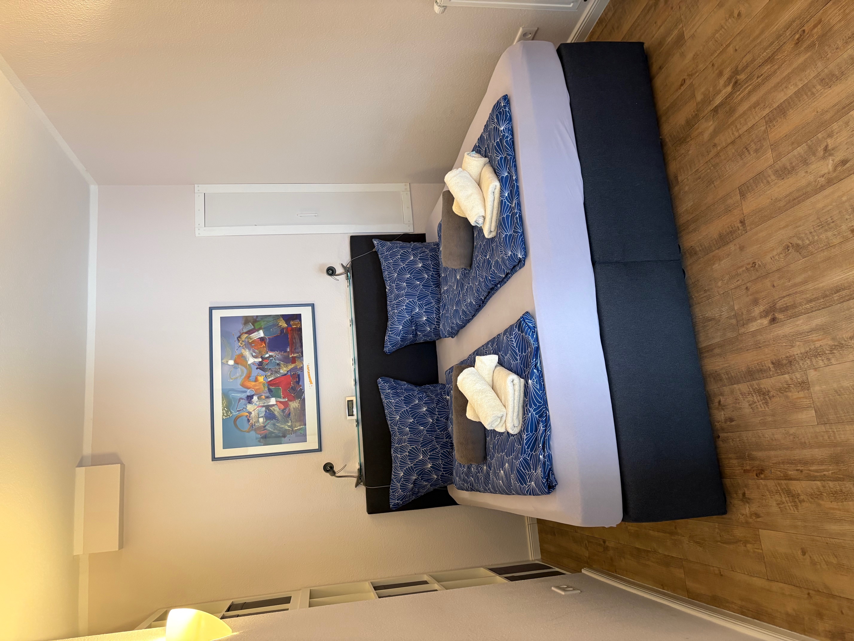 - ein Schlafzimmer mit einem Doppelbett